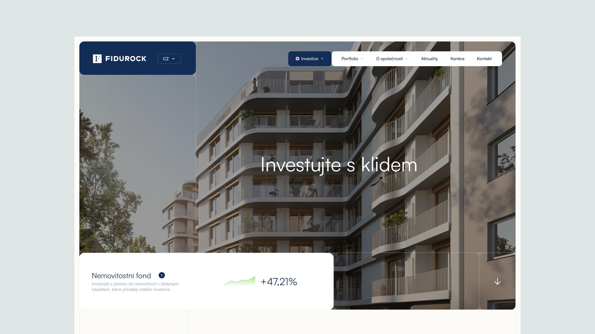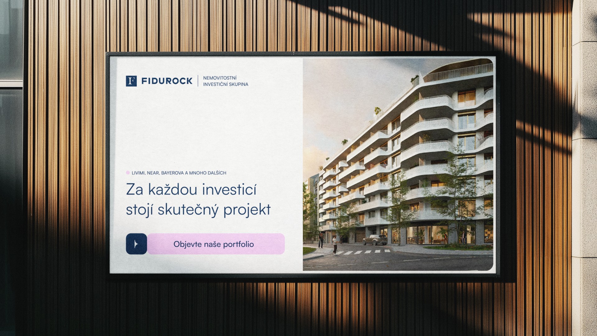 For the real estate investment group Fidurock, we created a new symbol to complement the existing logotype. We developed the brand strategy, introduced the new claim “Investujte s klidem”, and refreshed the brand with a new color palette.